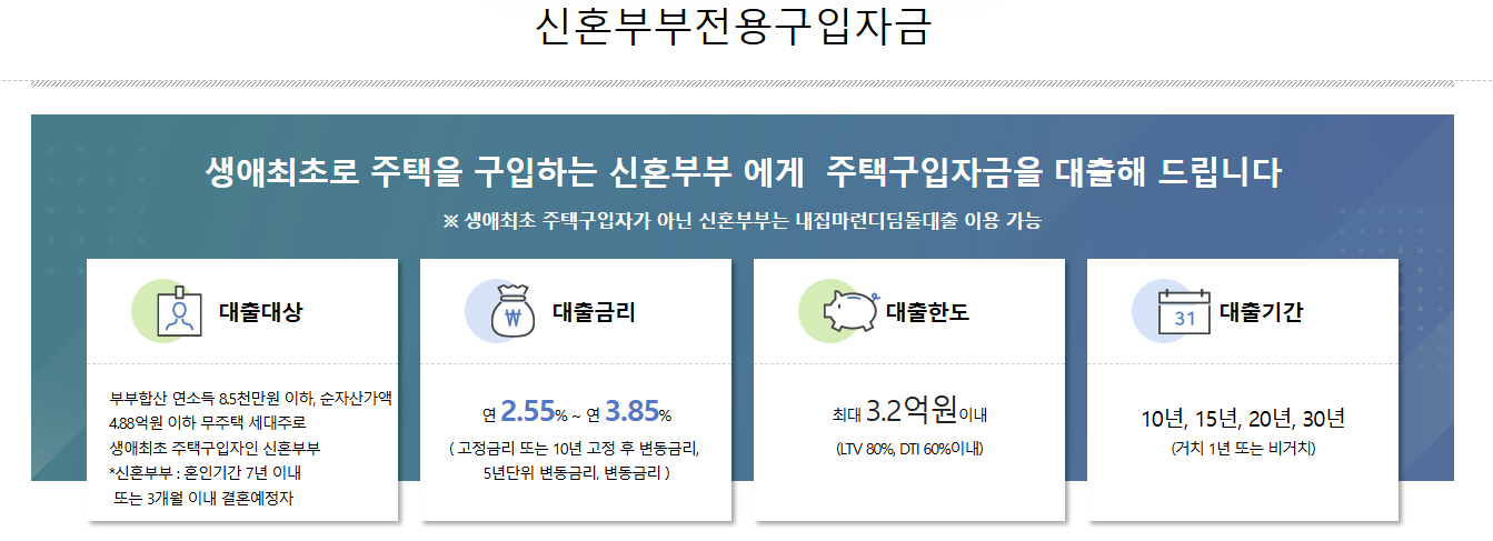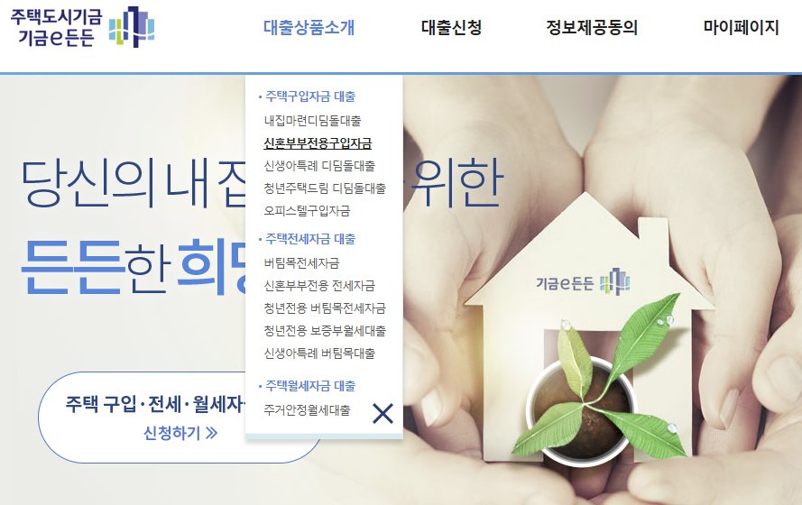 신혼부부전용구입자금 대출을 클릭하고 들어갑니다.
